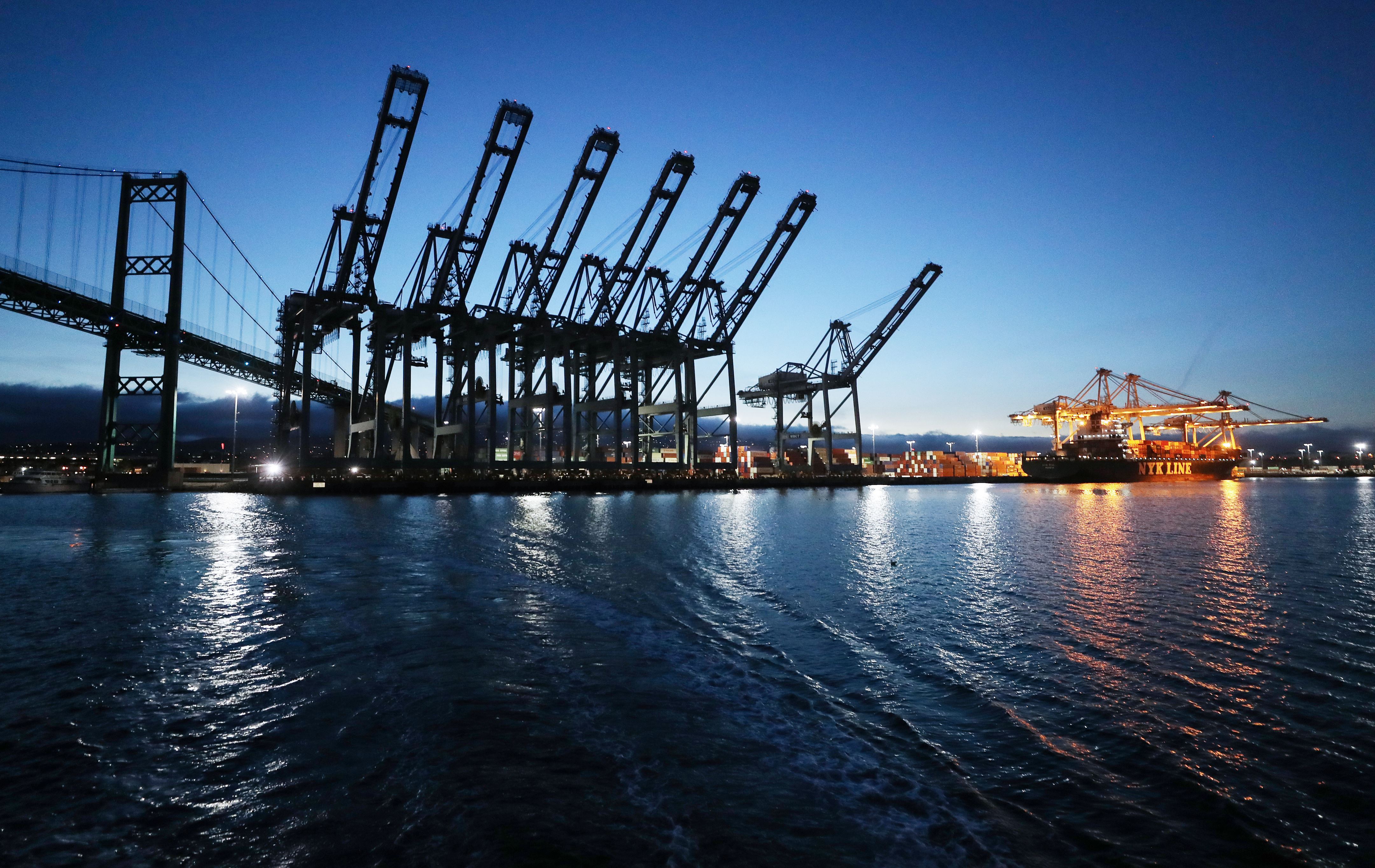 Los puertos de Los Ángeles y Long Beach lucían semivacíos el 6 de marzo, luego de las cancelaciones por temor a la importación de más casos de COVID-19.