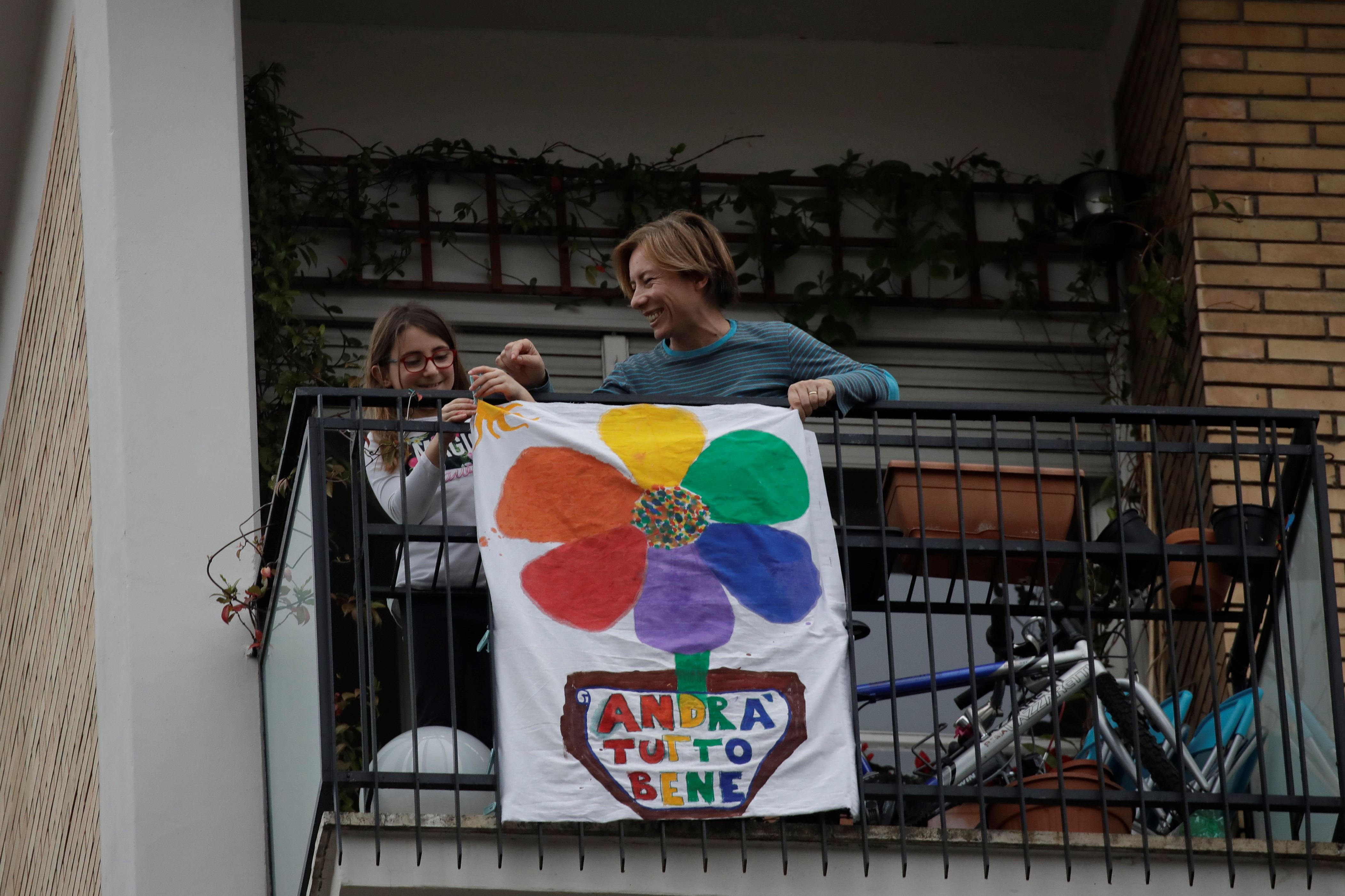 Mientras tanto, en medio de la cuarentena obligatoria, decenas de italianos salieron a los balcones de sus casas y colgaron el mensaje: «andra tutto bene», que traducido significa «todo estará bien».