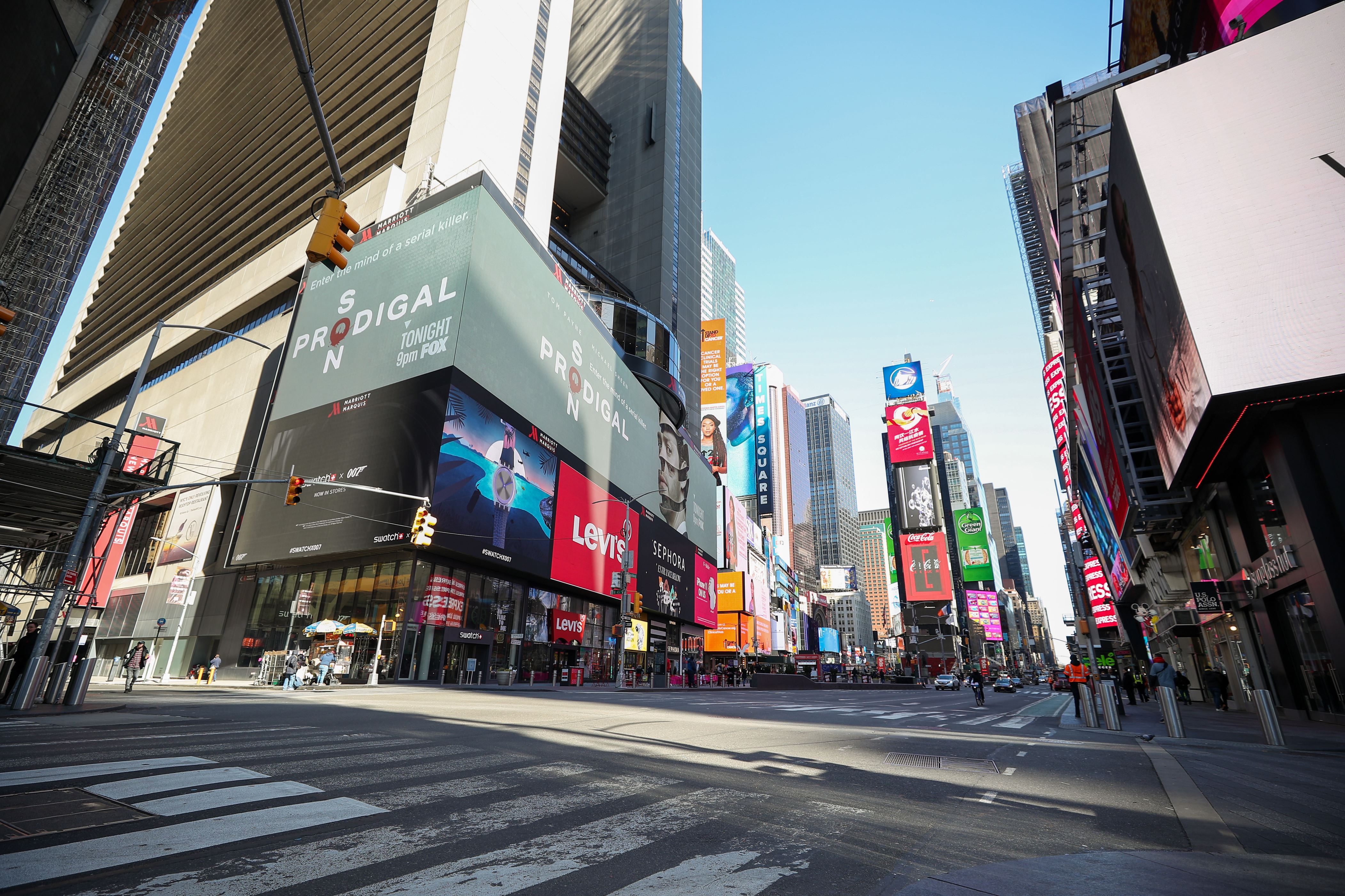 La ciudad de Nueva York, llamada también La Ciudad que Nunca Duerme, parece una ciudad fantasma desde la declaración de estado de emergencia por la pandemia del COVID-19. Así se veían las calles que rodean la famosa Times Square el 16 de marzo de 2020.